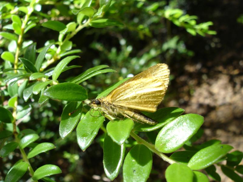 Aspecto físico:. Mariposa de tamaño pequeño con alas de color dorado brillante en toda la extensión de su cara inferior.